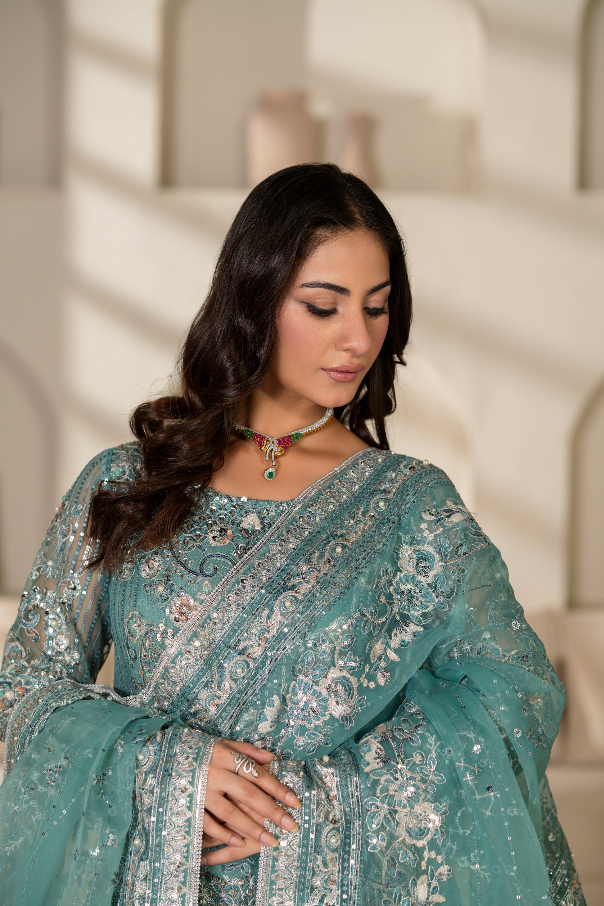 Embroidered Organza with Hand Embellishments Dupatta – 2.5 Yards (Ready to Wear)