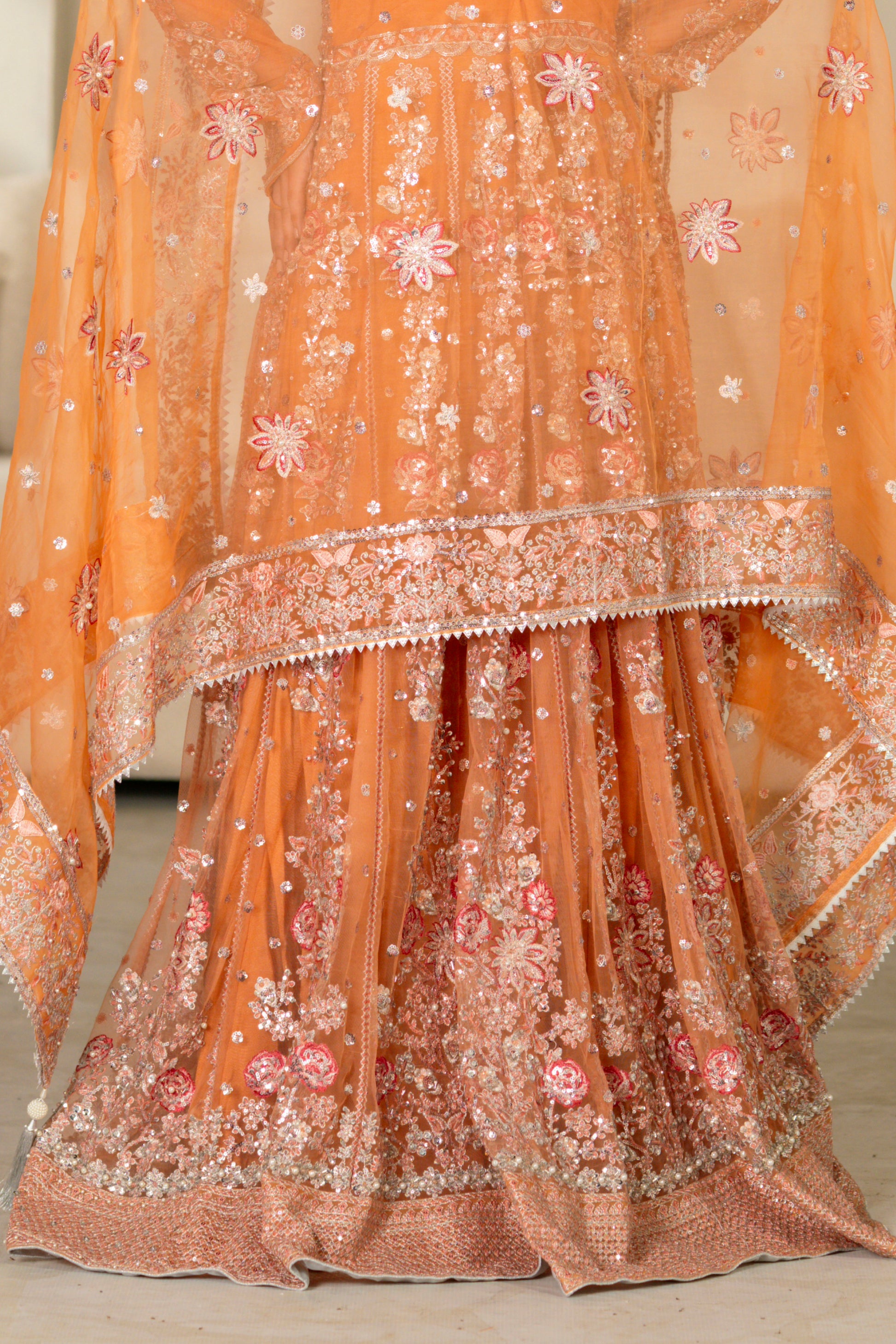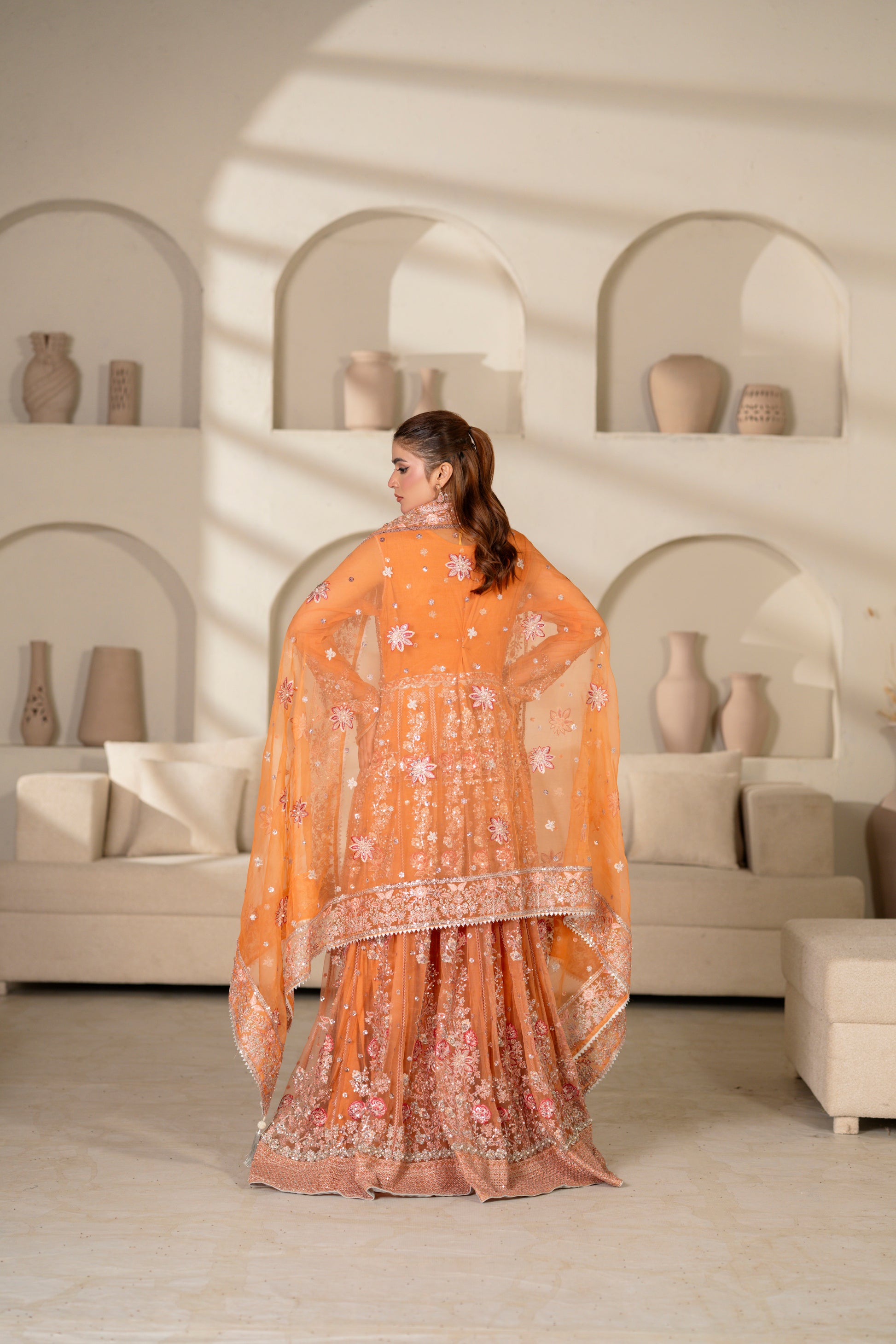 Embroidered Breeze Net with Hand Embellishment Sleeve